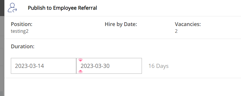 You would need to fill the start and end date of the span of time you want to publish this position for employee referral
