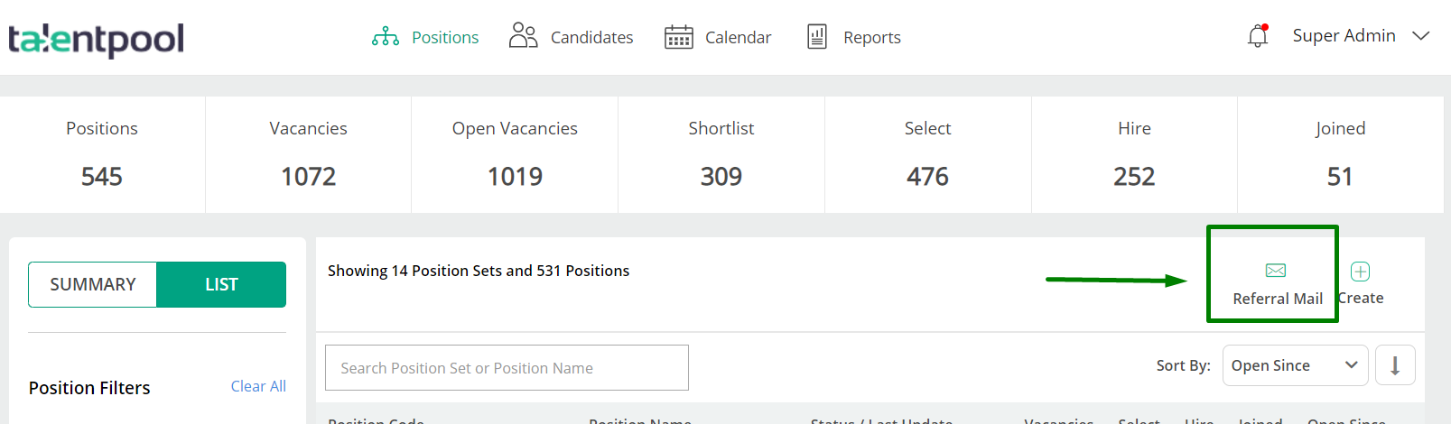You can see the preview of all positions you have selected in this template and send the mail across .